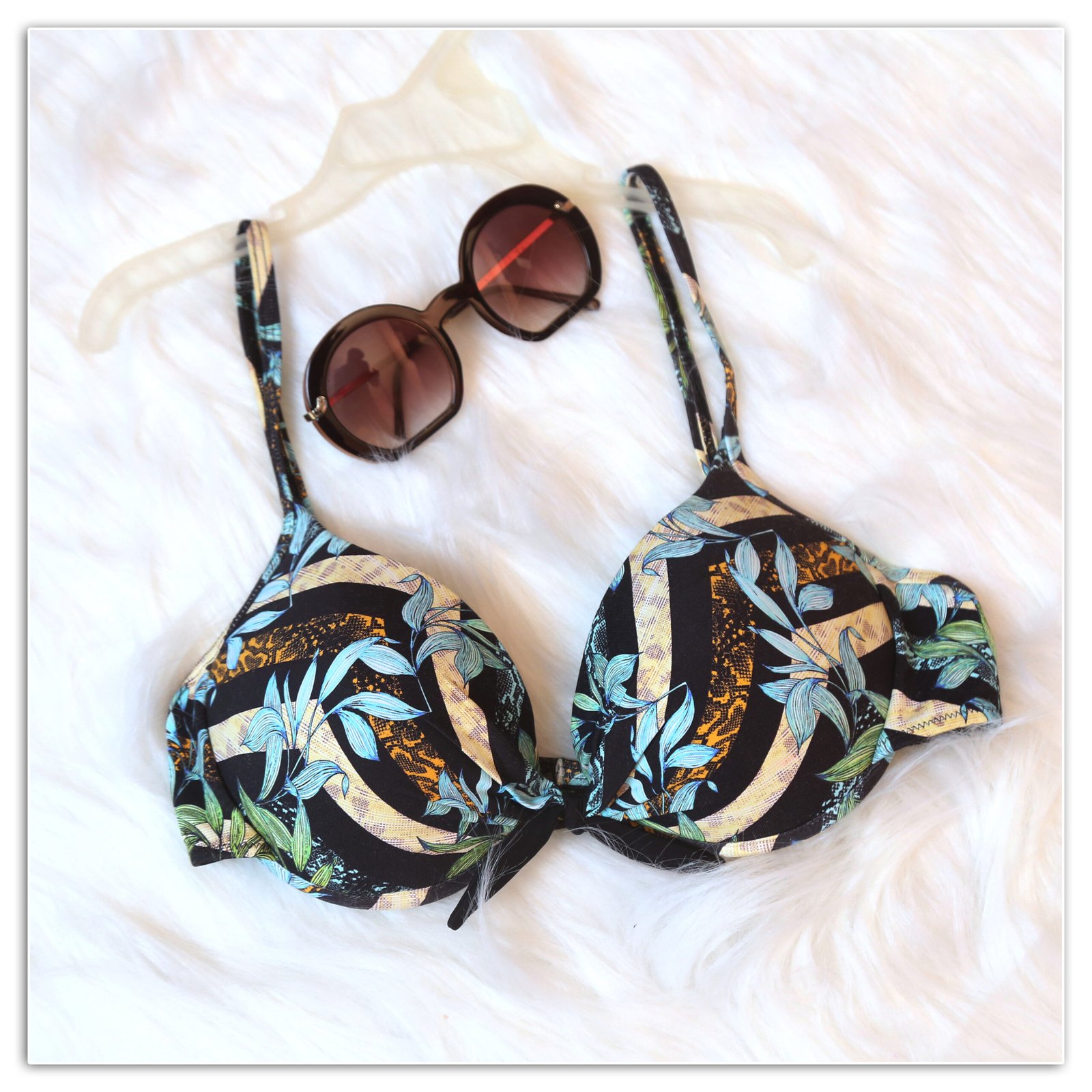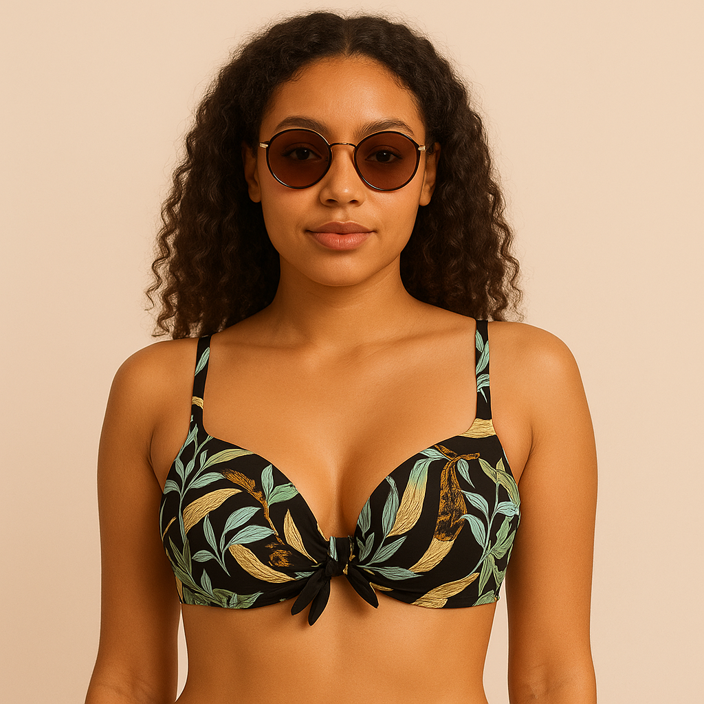 Be the first to review “Tropical Leaf Print Tie-Front Bikini Top”